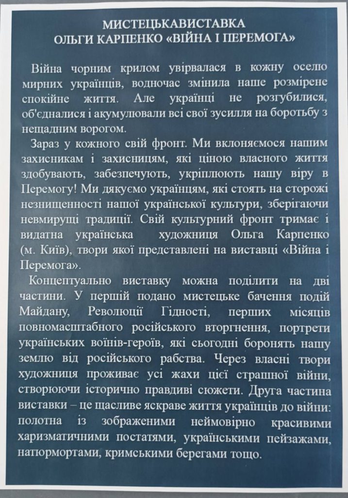 14 вересня 2023 року студенти та викладачі відділу відвідали мистецьку виставку Ольги Карпенко “Війна і перемога”. Автор запису:Admin Запис опубліковано:28.09.2023 Категорія запису:Загальні новини / Образотворче мистецтво Вам також може сподобатись “Україно, моя Україно, я для тебе на світі живу» 13.12.2023 Круглий стіл: «Використання цифрових інструментів та традиційних методів і форм навчання в освітньому процесі коледжу: досвід і рішення» 13.01.2025 Звітний концерт 20.05.2025