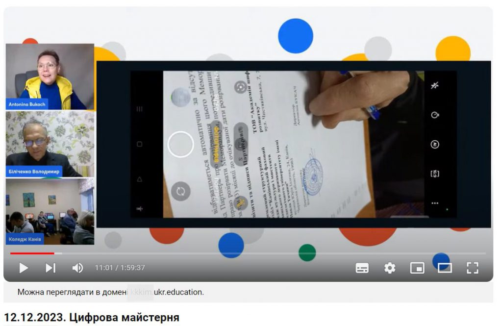 12 грудня 2023 року під час прямого ефіру Цифрової майстерні відбулося урочисте підписання Меморандуму про співпрацю між відокремленим структурним підрозділом “Канівський фаховий коледж культури і мистецтв Уманського державного педагогічного університету імені Павла Тичини” (директор Віктор Тихомир) та Академією цифрового розвитку (директорка Антоніна Букач). Захід відбувся у змішаному форматі.