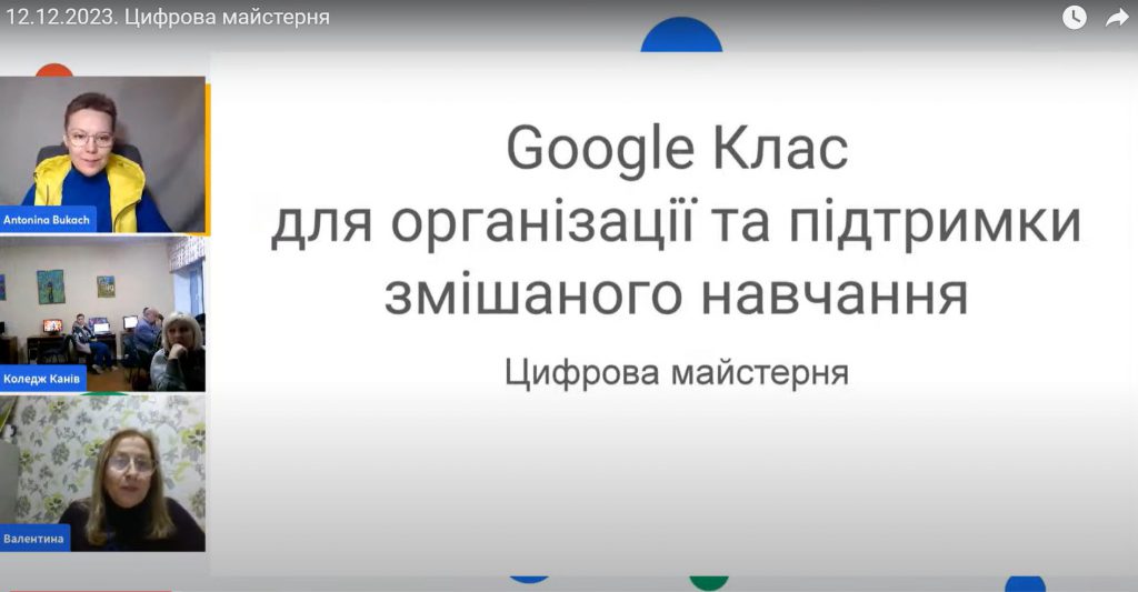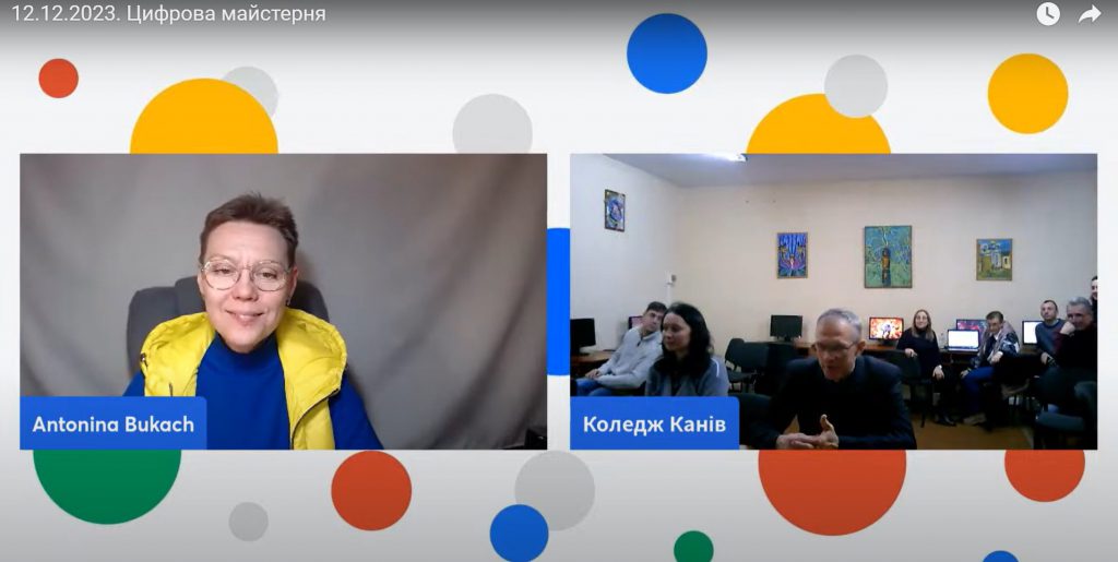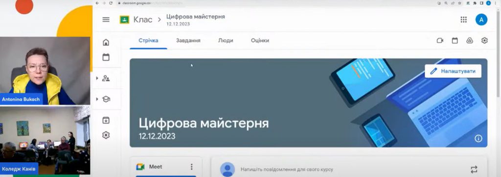 Надалі, учасники інтерактивного заходу “Цифрова майстерня сертифікованого тренера Google Антоніни Букач” виконували тренувальні вправи у віртуальному класі. Антоніна Василівна зосередила увагу учасників Цифрової майстерні на тому, що перед початком роботи з цифровими інструментами потрібно вивчати їхні особливості в офіційних довідкових центрах,важливо встановити алгоритми дій та правила налаштування. Педагоги коледжу отримали навички організації змішаного навчання засобами Google Класу в Google Workspace for Education Fundamentals.