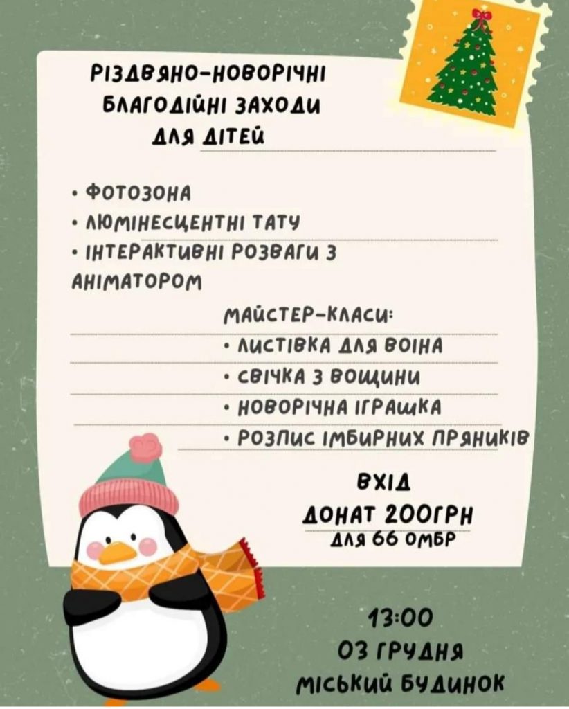 3 грудня викладачі відділу образотворчого мистецтва Марина Головко та Ірина Ренькас брали участь у Різдвяно-новорічному заході для дітей та долучилися до міжрегіональної виставки. На виставці були представлені роботи студентів із живопису, декоративного розпису та ниткографії. Також викладачі провели майстер- клас по виготовленню новорічної іграшки та листівки.