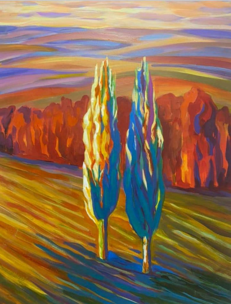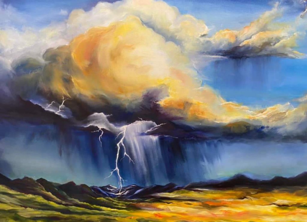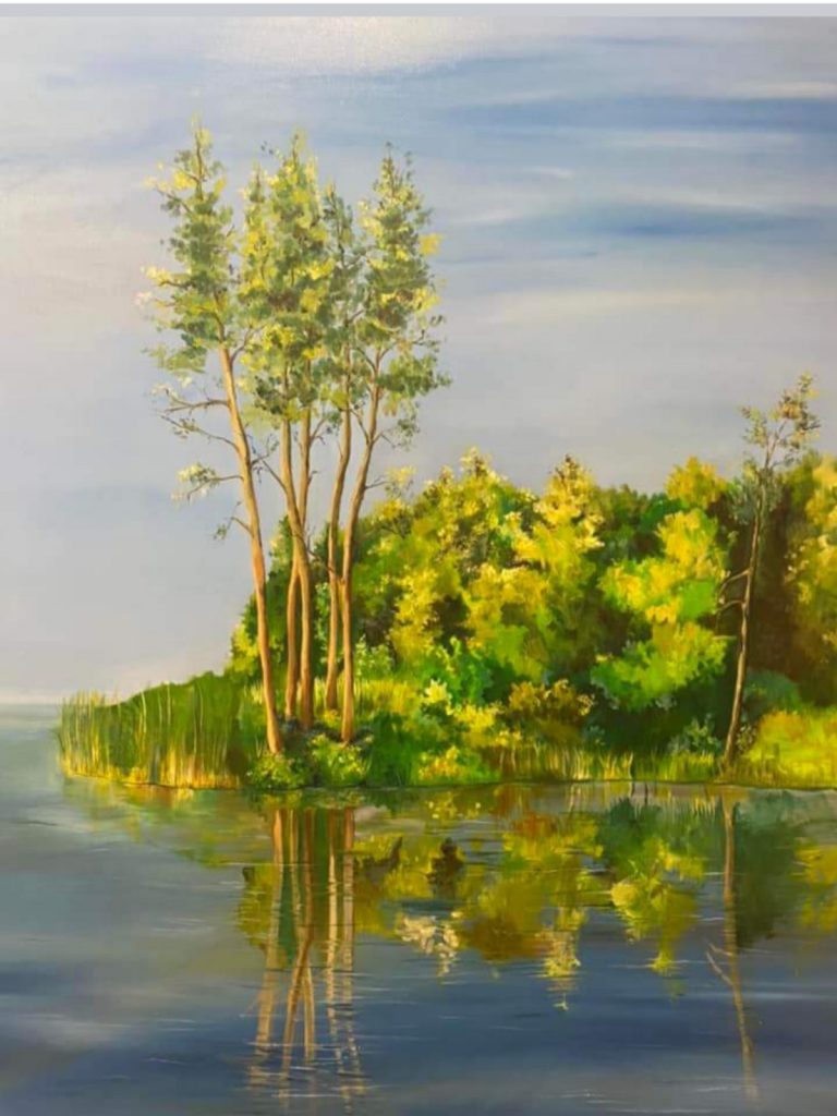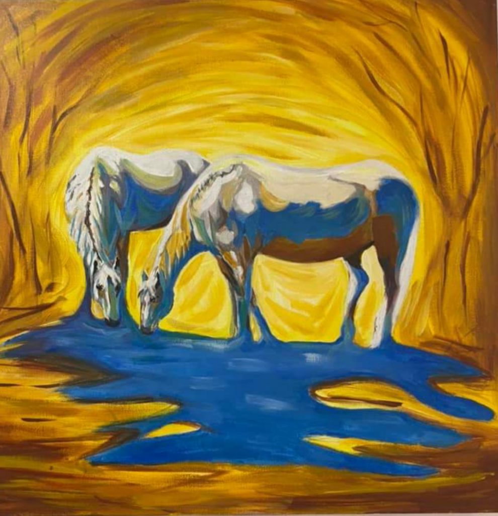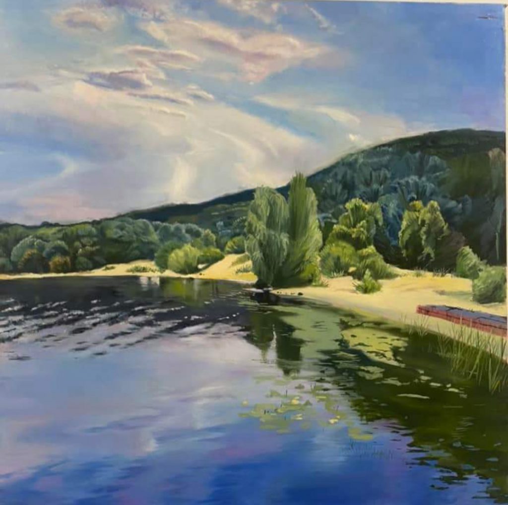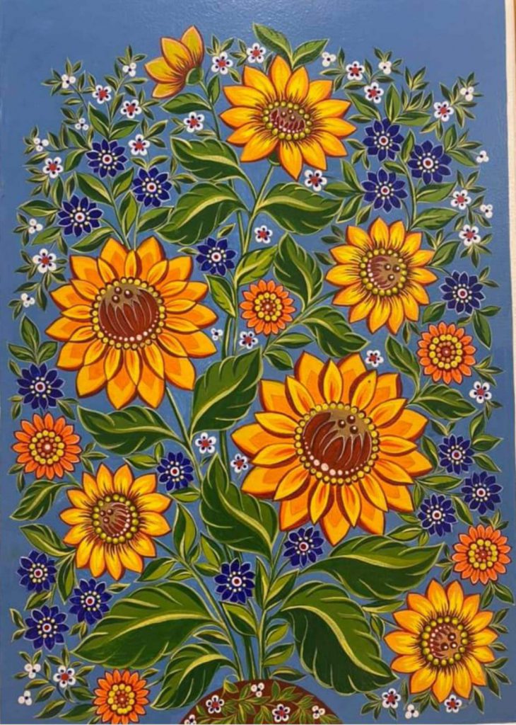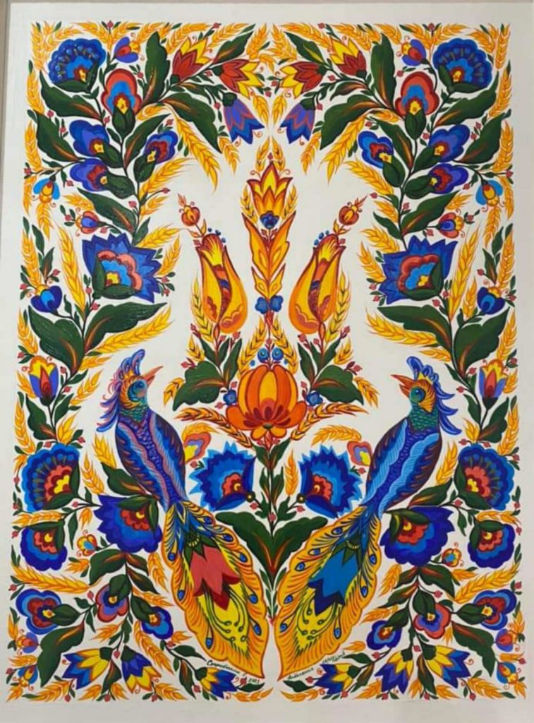 На виставці представлені живописні полотна і українська традиційна вишиванка .
